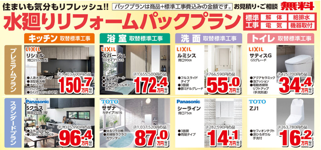 ■水廻りリフォームのパックプラン