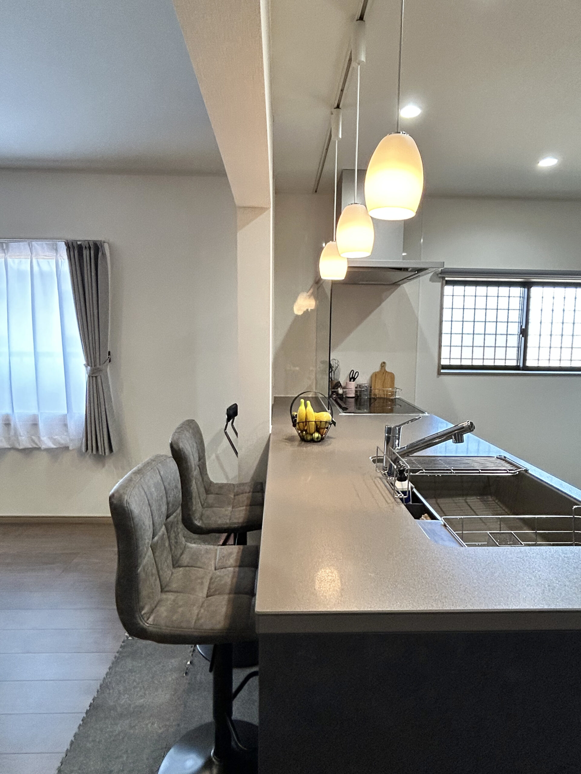 「カウンターに座って食事ができたらいいな…」というご要望から、カウンターを設置しました。