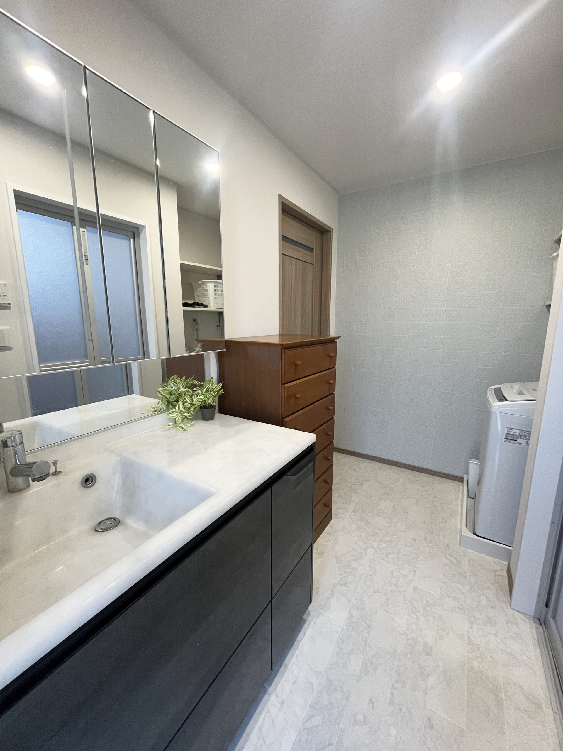 デザイン性と使い勝手を兼ね備えた、こだわりの洗面空間になりました。