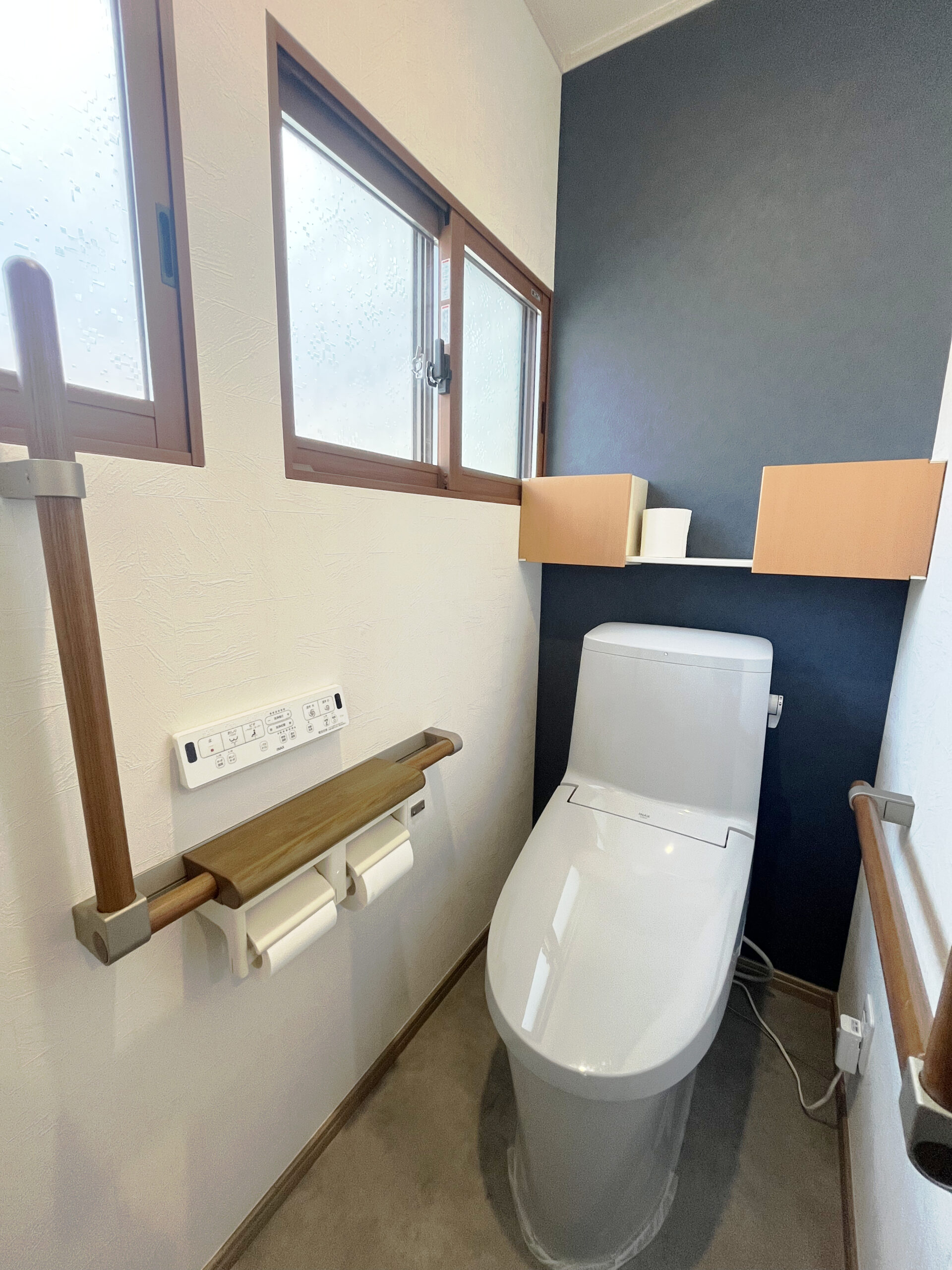トイレは既存の収納や手洗いを活かし、使い勝手とコストのバランスを考えた仕上がりとしました。