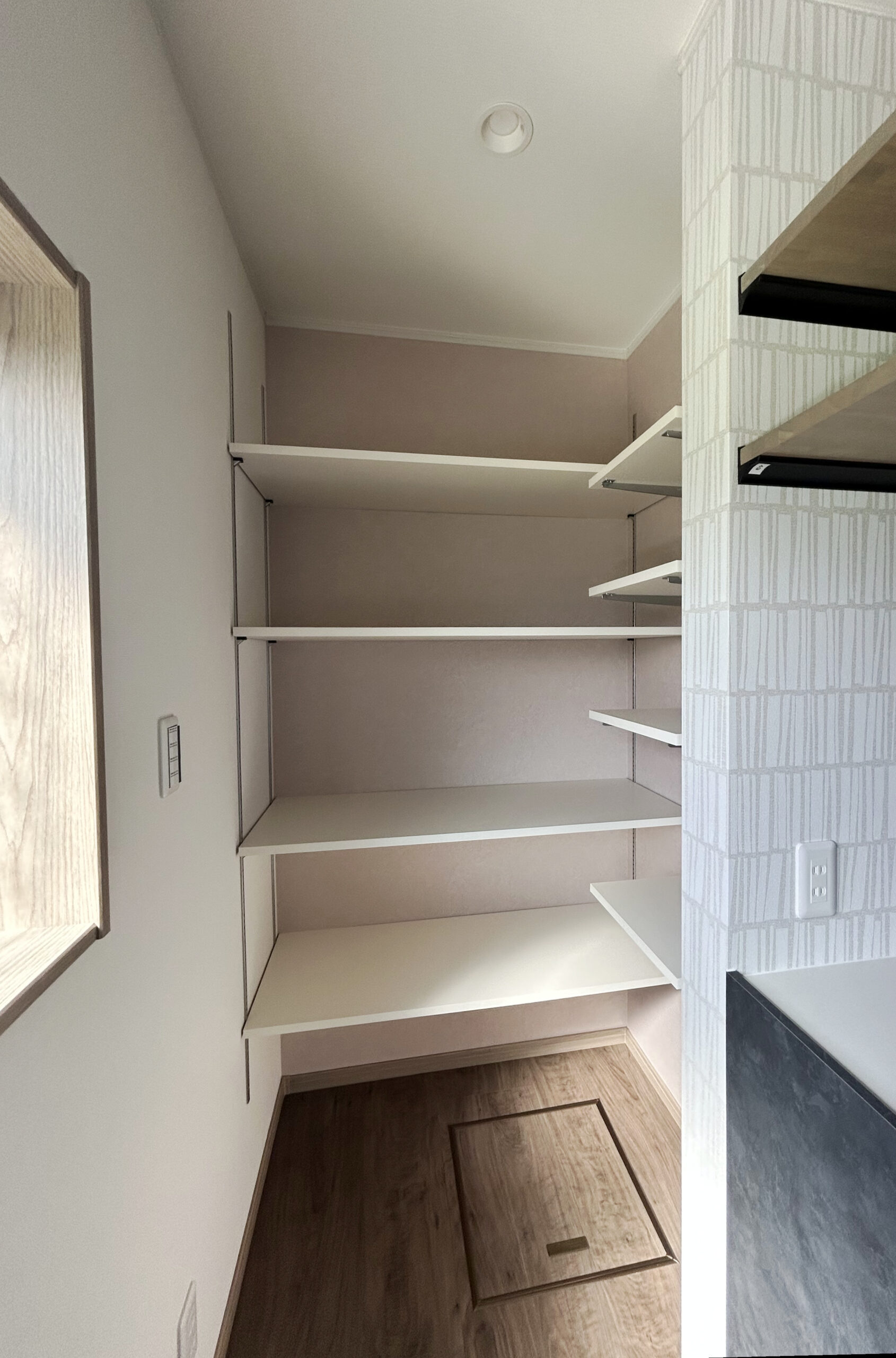キッチン背面には、カップボードに加えてパントリーコーナーも設けました。