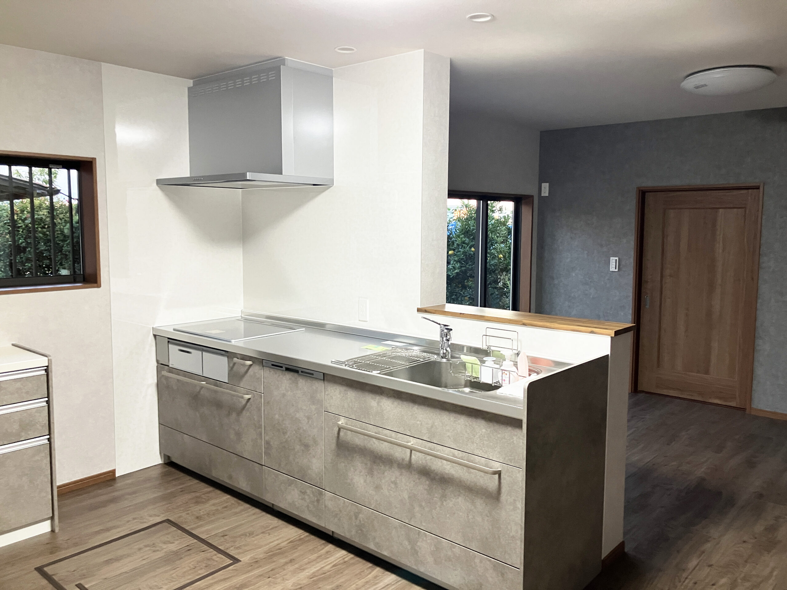 キッチンは壁付けから対面にすることで、料理をしながらもコミュニケーションが取りやすい空間となりました。