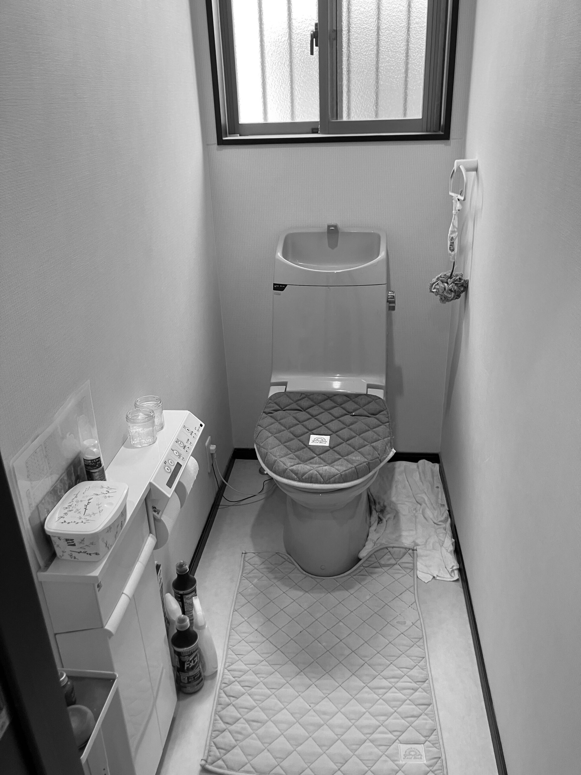 トイレ、壁、紙巻き器はまっしろで統一し、床はグレーを採用。白とのコントラストでシンプルながらも落ち着きのある空間に仕上がりました。